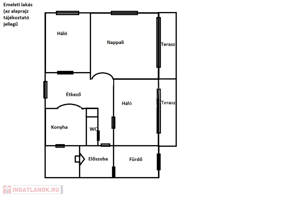 - 3 szoba, étkező, konyha, zuhanyzós fürdőszoba, külön WC, előszoba