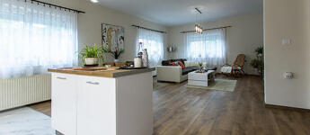 A belső terek praktikusak és otthonosak: 2 külön nyíló szoba és egy tágas, amerikai konyhás nappali biztosítja a kényelmet. A fűtést vadonatúj gázcirkó adja, a házhoz pedig egy 16 négyzetméteres, fedett terasz és két pince tartozik (36 és 15 négyzetméteres), így elegendő tárolóhely áll rendelkezésre. Az épület betonfödémes, így a tetőtér opcionálisan beépíthető a későbbiekben.