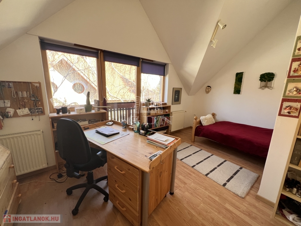 -a tetőtérben a válaszfalak gipszkarton falazatúak, így a fenti a terek könnyen változtathatóak, pl. a képeken látható fenti galérián plusz szoba is kialakítható.