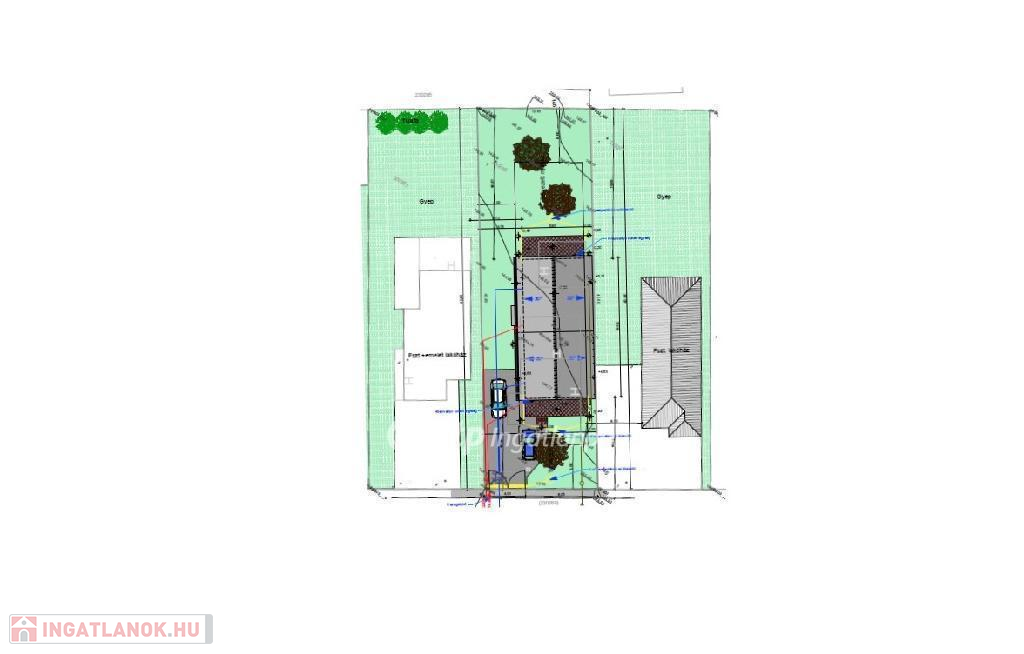 MŰSZAKI ADATOK: A ház szigetelt, vasbeton sávalapra épül, 30-as Leier tégla főfalakkal, 10-es tégla válaszfalakkal és E gerendás vasbeton födémmel. A homlokzatra 15 cm-es dryvit, a lábazatra 12 cm-es xps, az aljzatra 10 cm-es lépésálló és a födémre 30 cm-es kőzetgyapot szigetelés kerül. Fehér, műanyag, 3 rétegű, hő- és hangszigetelt nyílászárókat építenek be. A fűtésről egy takarékos hőszivattyú gondoskodik, padlófűtés hőleadással, a meleg víz ellátásért egy elektromos vízmelegítő felel. A ház komfortos hőmérsékletét 1 db inverteres, hűtő-fűtő klíma szolgáltatja. A hőszivattyúhoz és a klímákhoz a kedvezményes H tarifás villany elszámolás tartozik, ami a normál tarifás áram áránál sokkal kedvezőbb, 23 Ft/KW, ezért ez a ház a hőszivattyúnak, a H tarifának, a klímáknak és a vastag szigetelésnek köszönhetően nagy kedvező rezsiköltségekkel fenntartható.