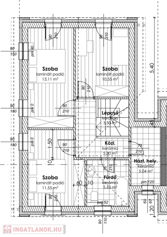 Emelet: nettó 54,67 m2