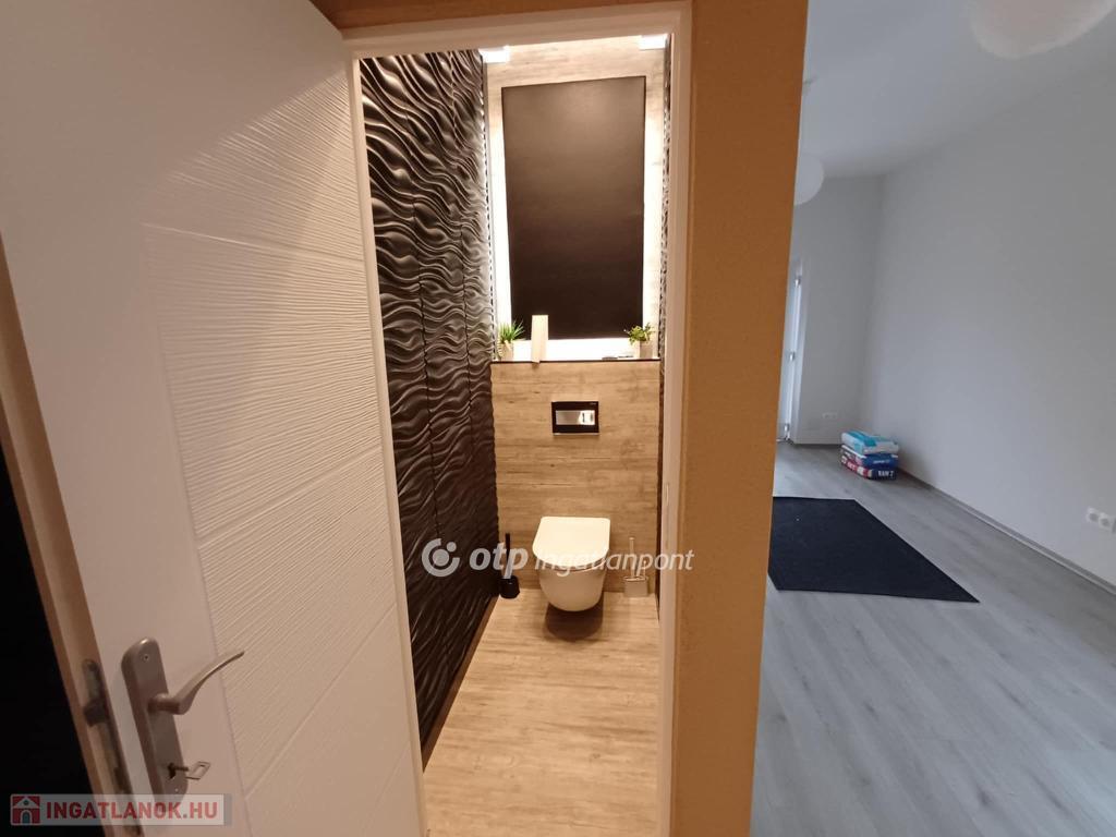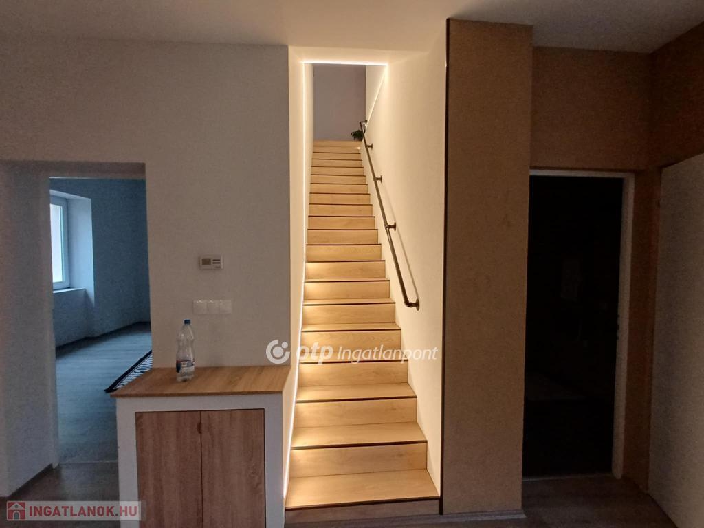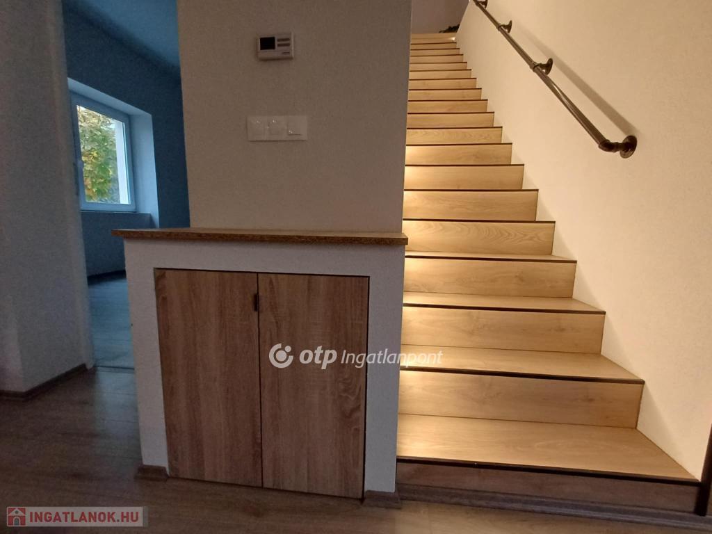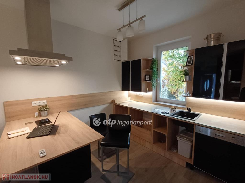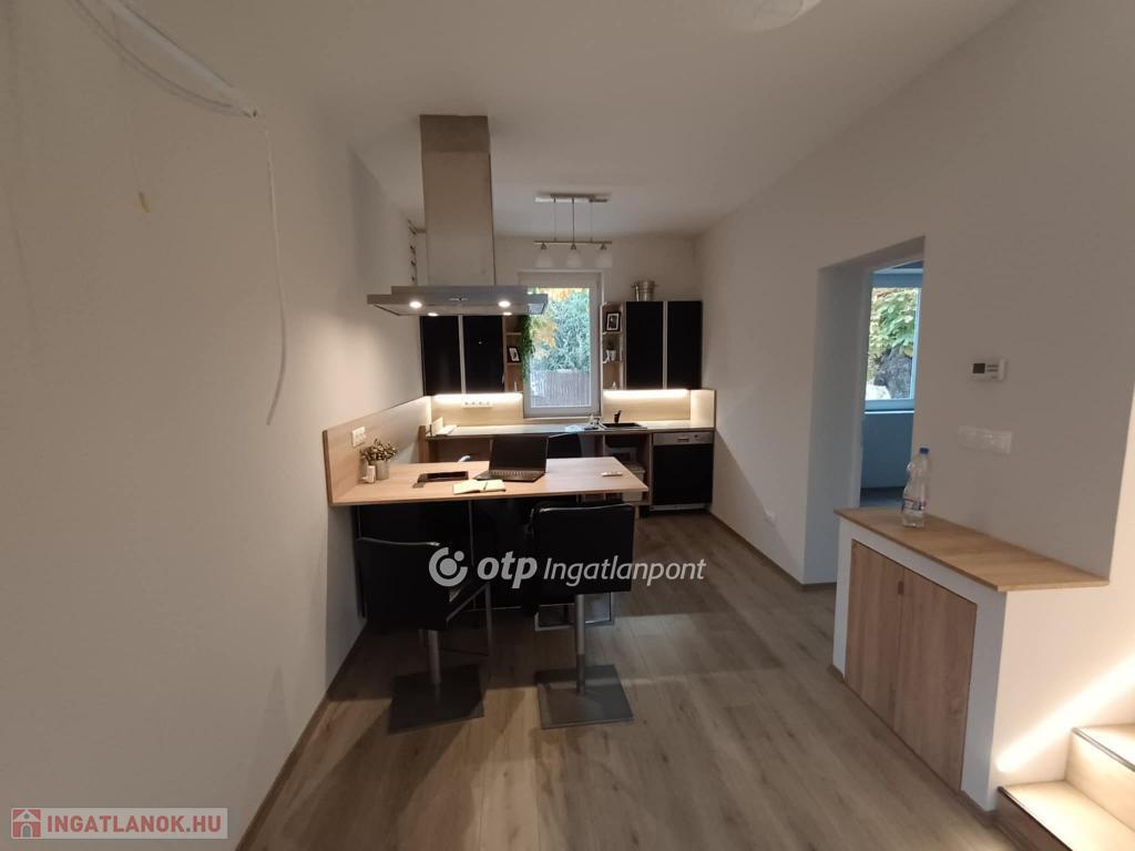 Kertvárosban, csendes környéken, jó ízléssel megépített, igényes, napfényes, berendezett konyha-étkezővel ellátott lakás saját - még alakításra váró - kertrésszel. Az épület kétszintes (földszint + emelet), a hátsókertben tartozik hozzá egy összesen két gépjármű elhelyezésére alkalmas fedett-nyitott tároló is. Maga a lakás a földszinten tágas konyha-étkezővel és egy hálóval, valamint zuhanyzós fürdővel és külön wc-vel rendelkezik, míg az emeleten egy nagy, kertre néző teraszos nappalival és egy másik hálóval épület. A nappali délkelet-délnyugatra tájolt, a terasz keleti tájolású. A háló mellé még egy fürdő-wc tartozik. A két szintet elegáns lépcső köti össze, a jól szerkesztett és szépen megvilágított belső lépcső kevésbé fiatal lakóknak is kényelmes közlekedést biztosít. A lakásba egy burkolt teraszról léphetünk be, erről áttekinthetjük a saját kertrészt is.