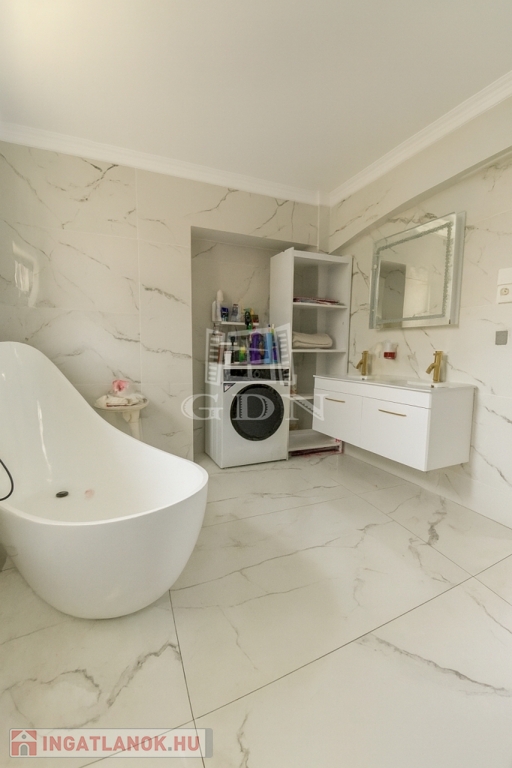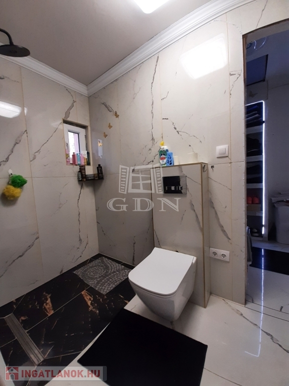 Az egyik hálószobához tartozik még egy zuhanyozós fürdőszoba WC-vel és egy gardrob szoba.