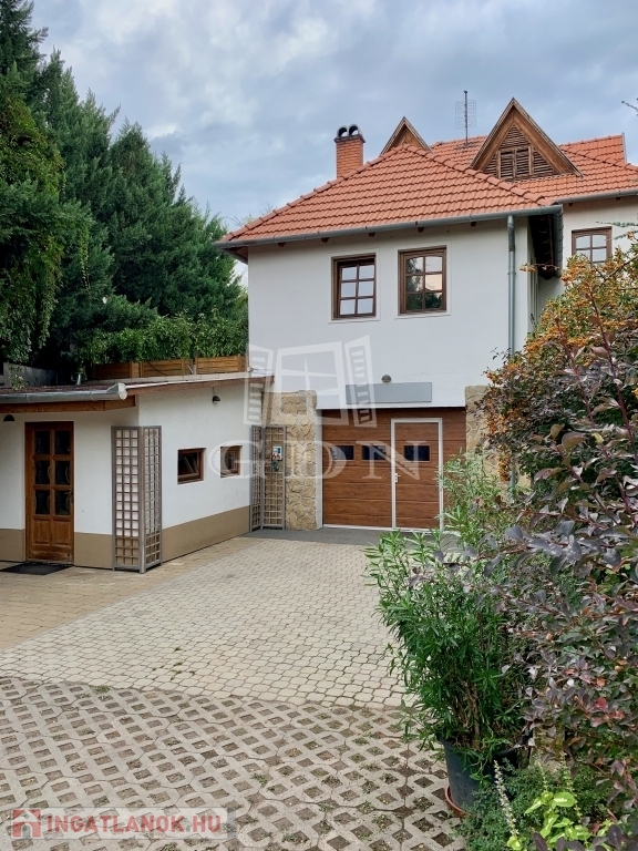 Az ingatlanon 400 m2-es, 2+2 fél szobás kétlakásos családi ház garázzsal és 4 méteres belmagasságú 240 m2-es műhellyel, irodával.