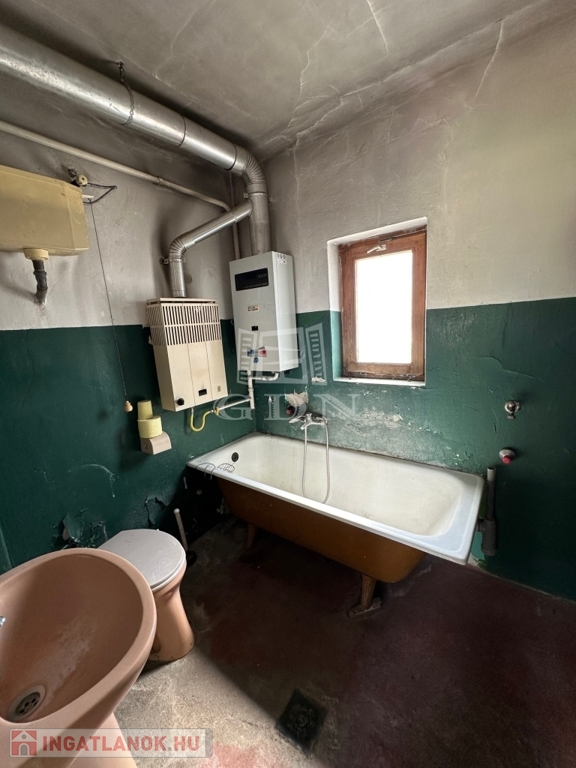 A fűtést gázkonvektorok adják a nappali kivételével, ott egy cserépkályha van, ami már gázzal működik.