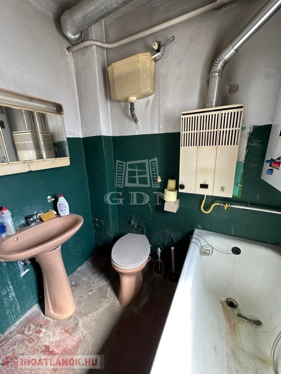 A melegvizet átfolyós gáz vízmelegítő biztosítja a fürdőszobában, a konyhában pedig egy kis villanybojler.