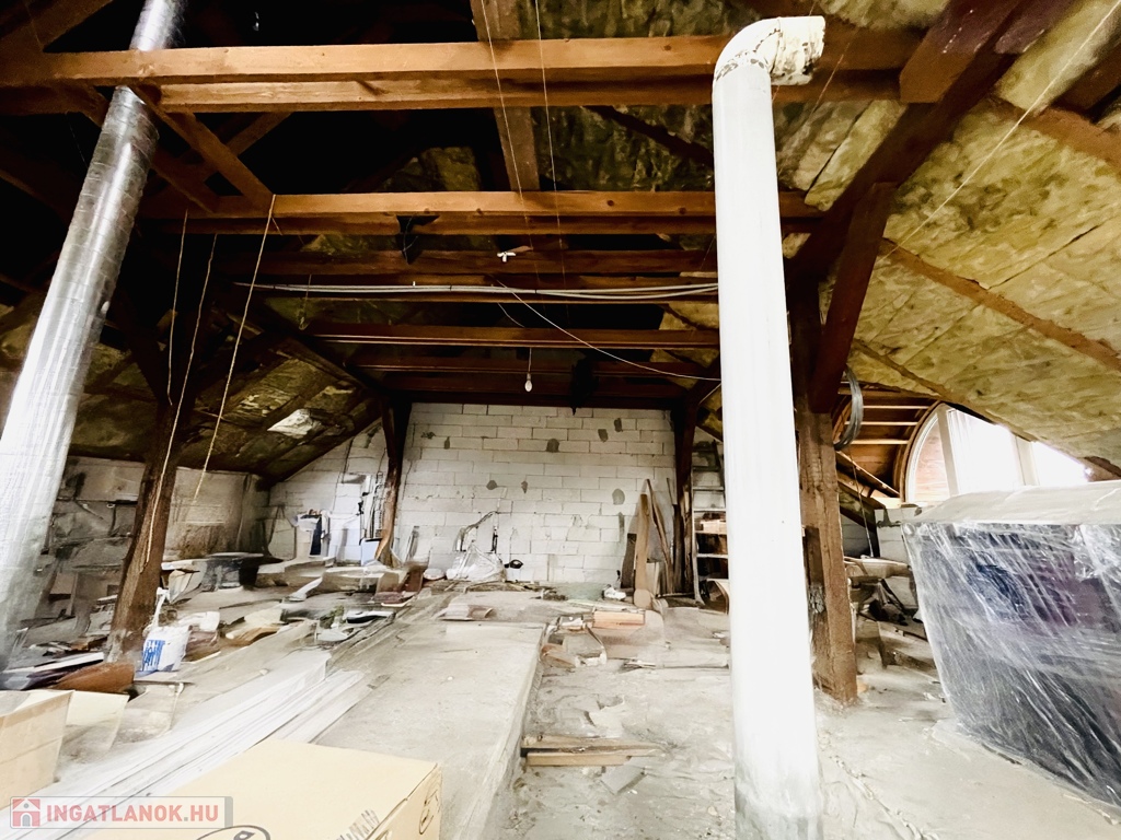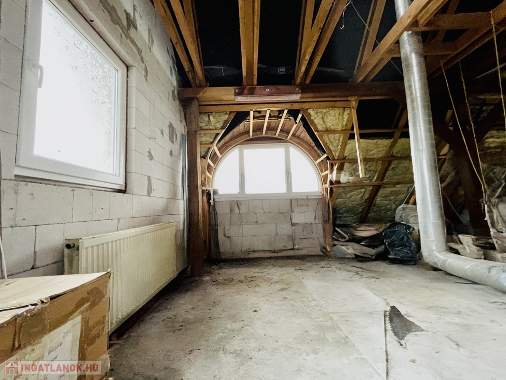• Tetőtér: a beépítés megkezdődött, a tervek elkészültek, a korszerű hőszigetelt műanyag nyílászárók beépítésre kerültek. A felső szintről gyönyörű kilátás nyílik a környékre – ideális hely új lakrész vagy tágas, világos élettér kialakítására.