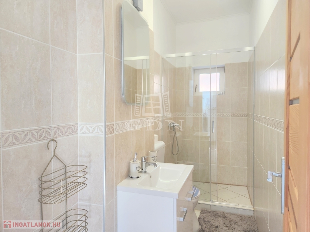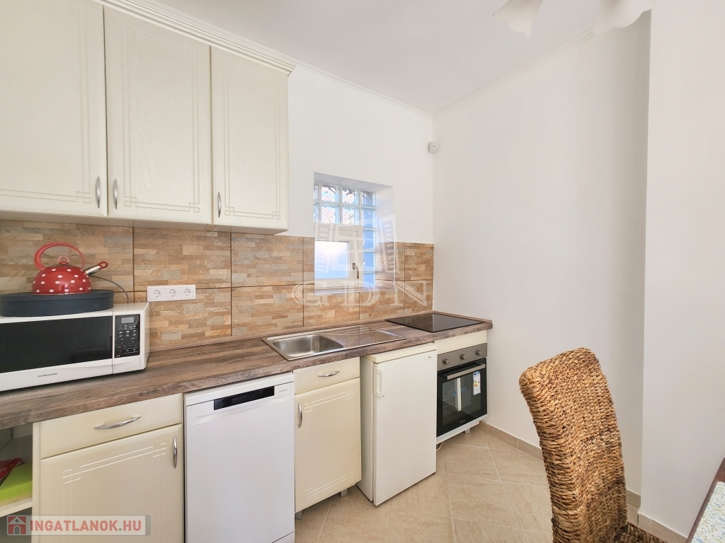 - A konyhába új mosogatógép, sütő és tűzhely került beépítésre, emellett a fürdő szaniterei, helyiségek burkolatai is magas kvalitásban újultak meg