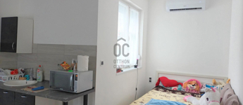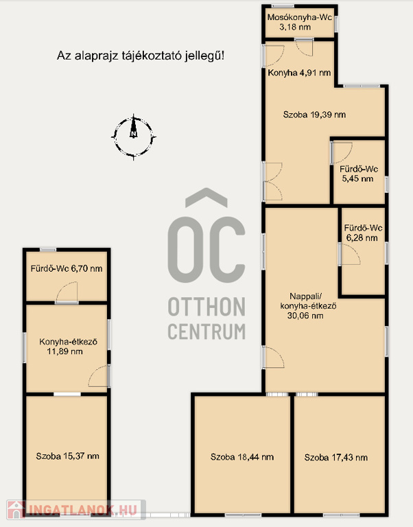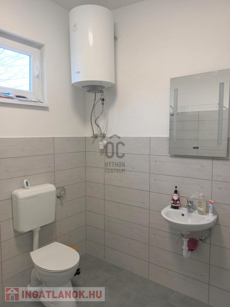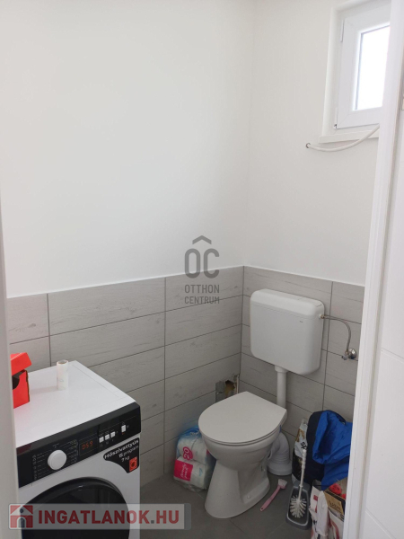 A második lakrész nettó 34 nm-es, helyiségei: szoba/konyha, fürdőszoba-Wc, mosókonyha-Wc.