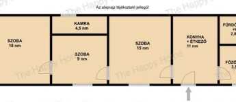 Elosztás: 3 szoba, konyha, főzőfülke, kamra, zuhanyzós fürdőszoba + WC