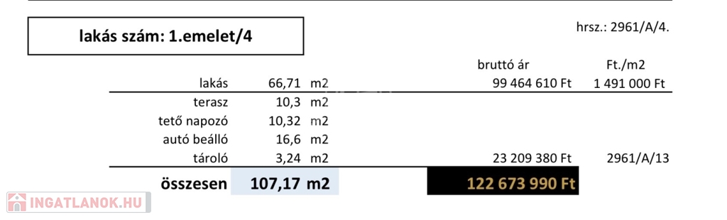 Lakások nettó alapterülete: 66,71 nm