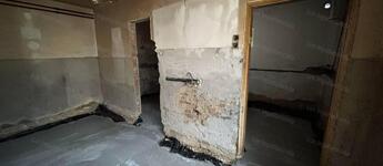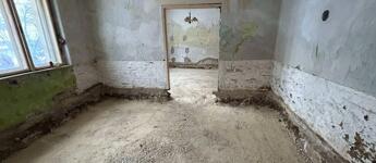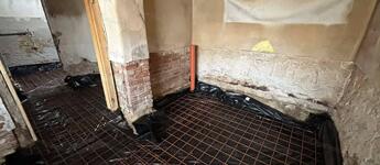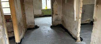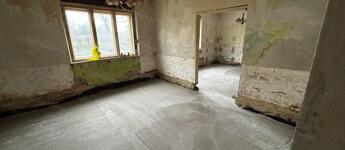 A tetőszerkezet teljesen új, modern cserépfedéssel és ereszcsatornával. A falazat kő és tégla vegyesen, amely masszív, időtálló struktúrát biztosít. A házat - a kritikus részének alábetonozásával és megfelelő vasalással - erősebbé és stabilabbá tették. A padlót minden helyiségben körülbelül 40 cm mélységig kibontották, így a belső tereket teljesen új alapokra lehetett helyezni. A teljes épület egységesen zúzott kő - fólia - vasalt C25-ös betonozást kapott, a szennyvíz elvezetés mellett. Ez egy erős, tartós beton, amit már komolyabb terhelésre is használnak, nem repedezik könnyen, hosszú távon jól bírja a terhelést. Erre már mehet a vízszigetelés, hőszigetelés, az aljzatbeton, estrich, esetleg padlófűtés, járólap, laminált padló....