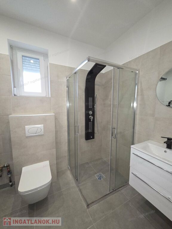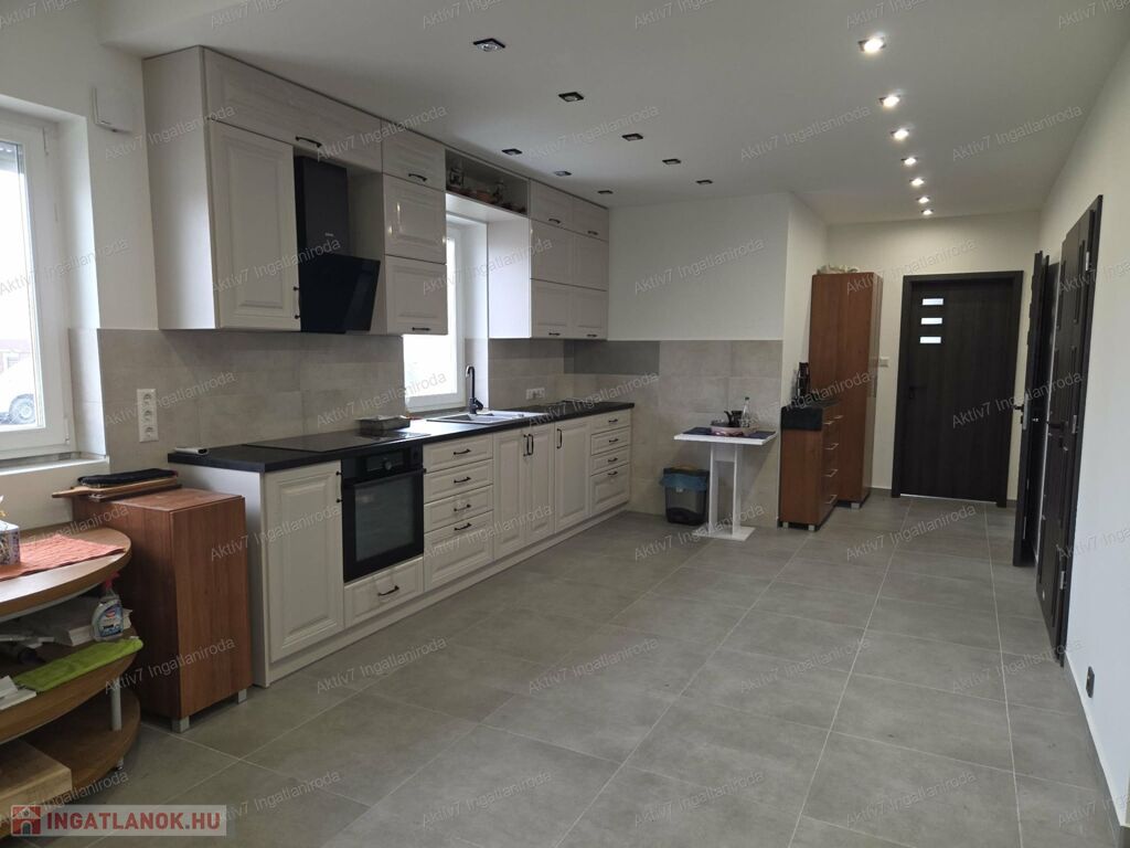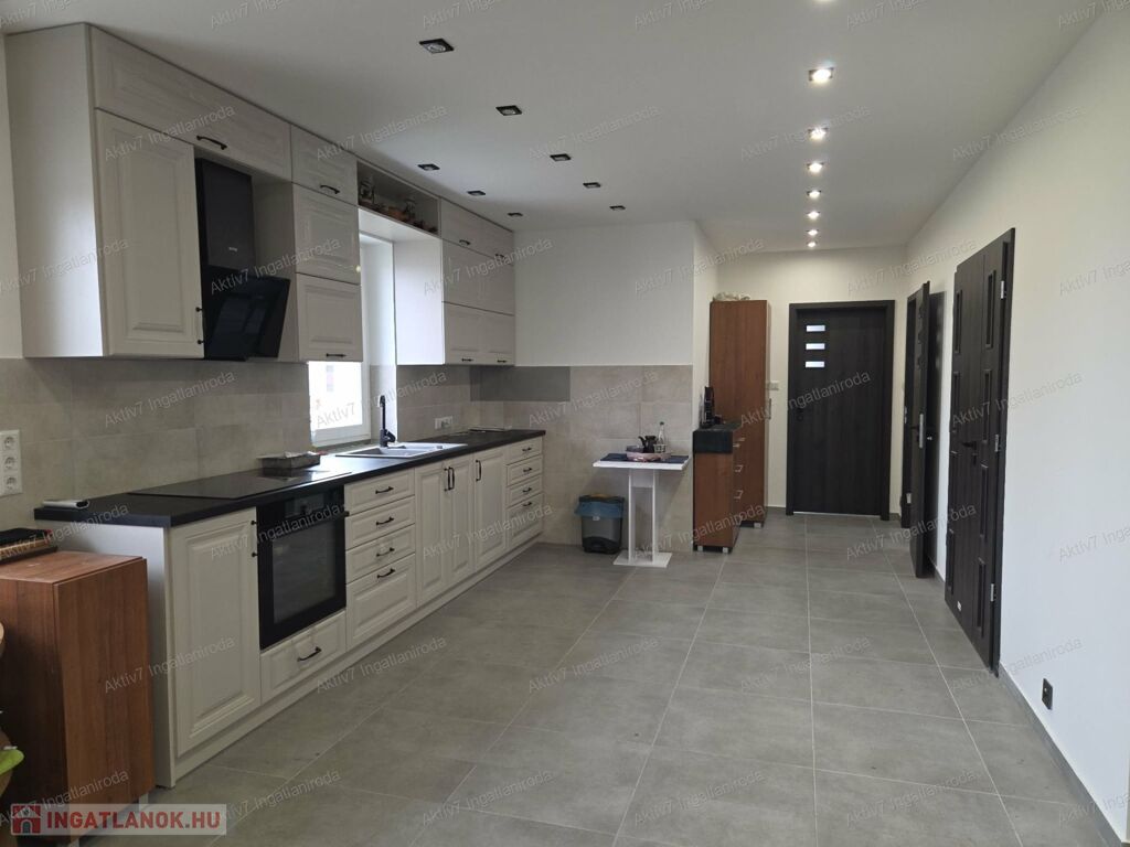 A 758 m²-es, telken elhelyezkedő, 90 m² nettó alapterületű, téglaépítésű ingatlan elrendezése átgondolt ,tágas, világos amerikai konyha–nappali, a családi és társasági élet központja, 2 hálószoba, 2 igényesen kialakított fürdőszoba az egyikben kád és tusoló is található, ebből nyílik egy háztartási helyiség is WC-vel, a másik fürdőszoba csak tusolós WC-vel, van egy külön vendég WC is, valamint egy közel 20 m2 területű terasz, a mellékelt alaprajz szerint.