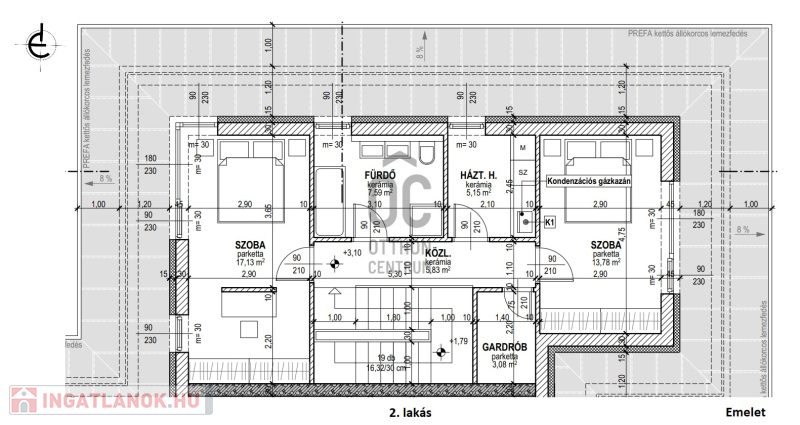 - 2 hálószoba (14, 17 nm)