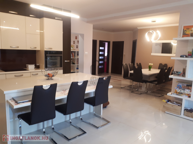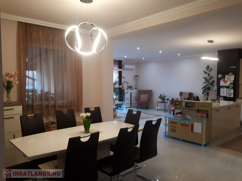Debrecen kedvelt kertvárosi részén, földszintes, 4 szobás, amerikai konyha+nappalis, dupla komfortos családi ház,1100 nm-es telekkel eladó. A tetőtér beépíthető.