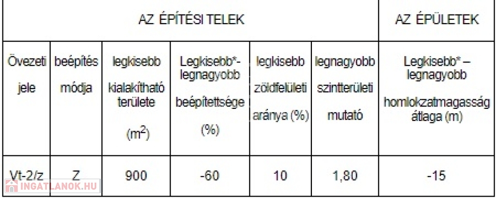 Övezeti besorolás : Vt-2/z