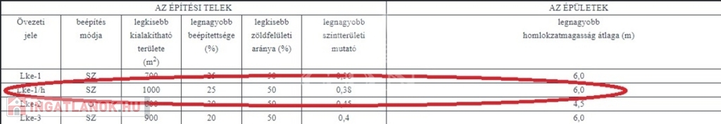 Övezeti besorolás: Lke-1/h.