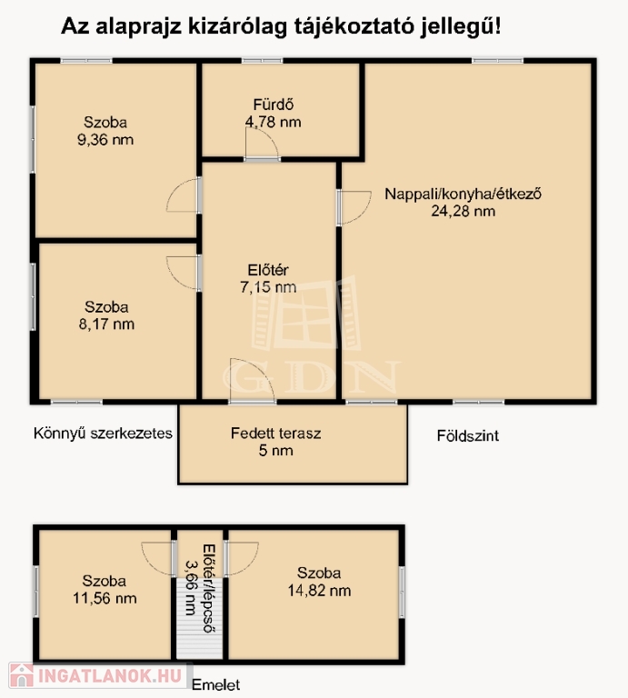 A téglaházban 3, a könnyűszerkezetesben 3+1 félszoba kapott helyet.