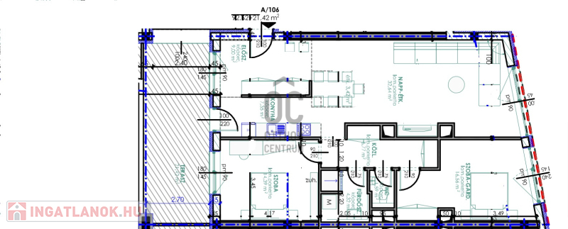 Debrecen abszolút Belvárosában, de mégis csendes övezetben, modern, egyedi megjelenésű, liftes társasház épül a földszinten 4 üzlettel és a -1 szinten teremgarázs parkolókkal. A lakások között vannak földszinti kertkapcsolatosak, és penthouse jellegűek is. A projekt tervezésénél, az elsődleges szempont az otthonos, élhető lakások építése volt. Az épületben helyet kapó lakások mindegyike egyedileg kialakított tágas terekkel, jó funkcionalitással és nagy méretű loggiákkal, teraszokkal rendelkezik. A lakások minőségi anyagok felhasználásával készülnek, a legkorszerűbb 3 rétegű üvegezésű ablakokkal, hőszivattyús klímával ellátottak. A belvárosban található ingatlan pár perc sétára található a Nagytemplomtól, a Piactól és a Bevásárló központoktól. Egyéb információért hívjon bizalommal. Ez az 1. emeleti lakás 92,62 nm-es, nappali-étkező-konyhás, +2 szobás, +21,42 nm-es terasszal.
