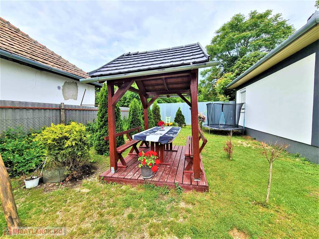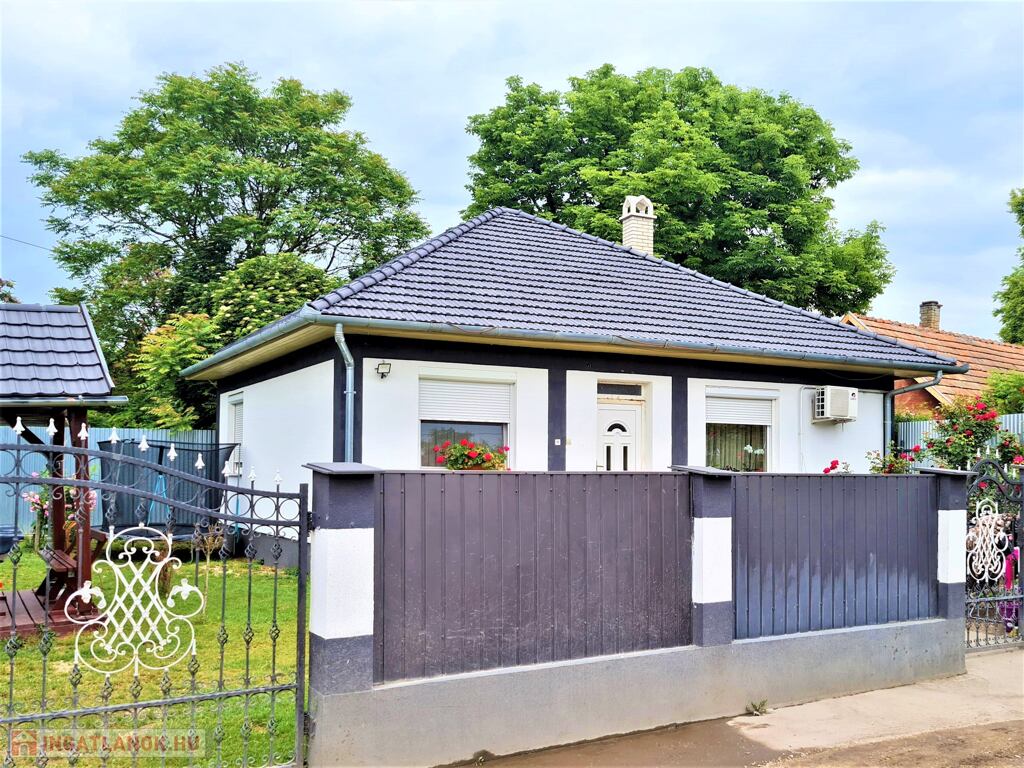 Családi ház 54 m2 lakóterületű, porotherm téglából épült 2007-ben. 2023-ban új tetőt került az épületre. A házban kialakításra került NAPPALI + 2 SZOBA, konyha, fürdő. Nyílászárói műanyag szerkezetű, hőszigetelt üvegezésű ablakok. Gázközponti fűtés biztosítja az otthon melegét és hűtő-fűtő klímával felszerelt. Riasztóval is rendelkezik. Rendezett udvarban kerti kiülő található.