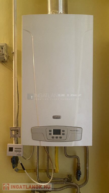 A lakás melegéről központi gázkazán, hűtéséről pedig klíma gondoskodik. A melegvízet villanybojler és gázkazán szolgáltatja.