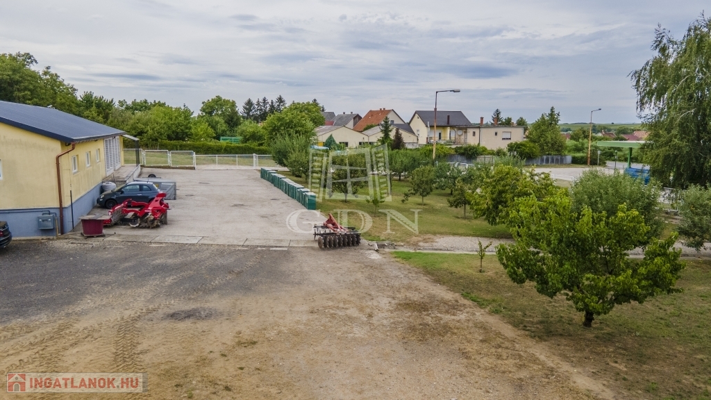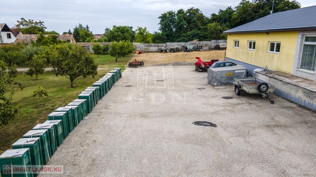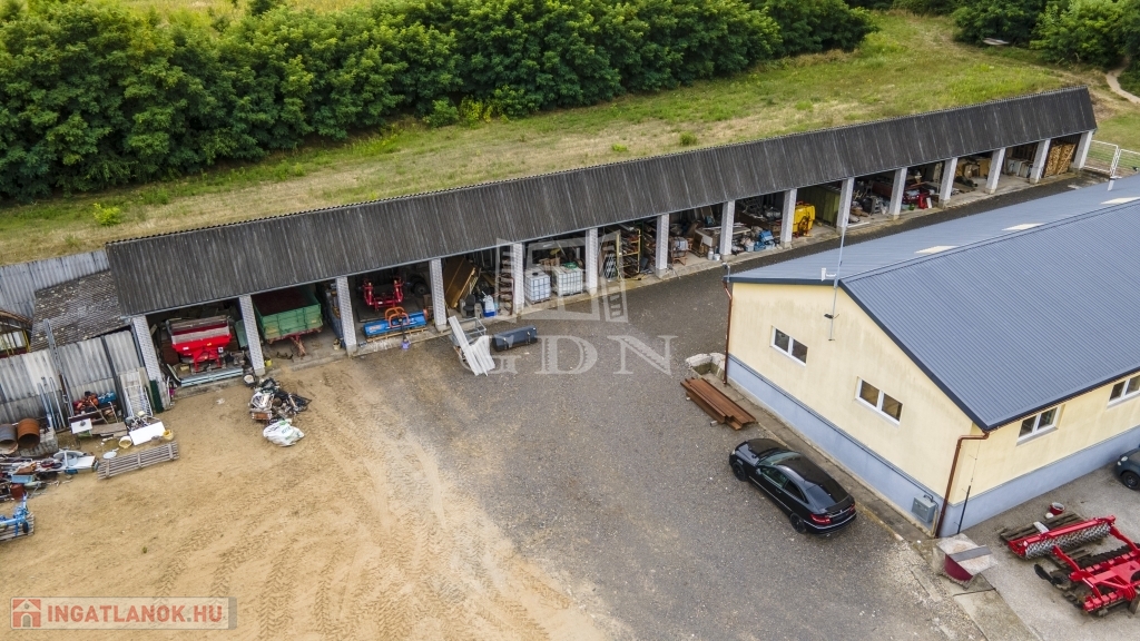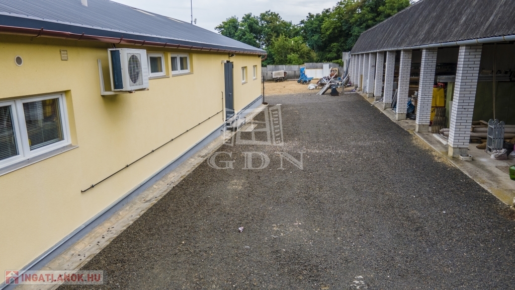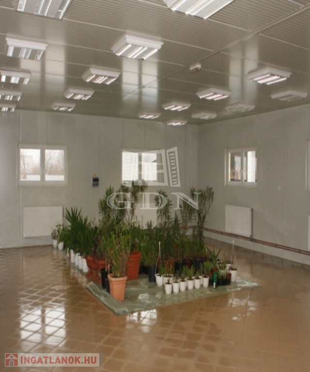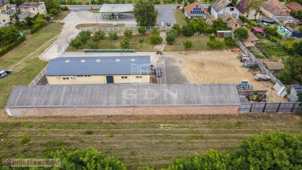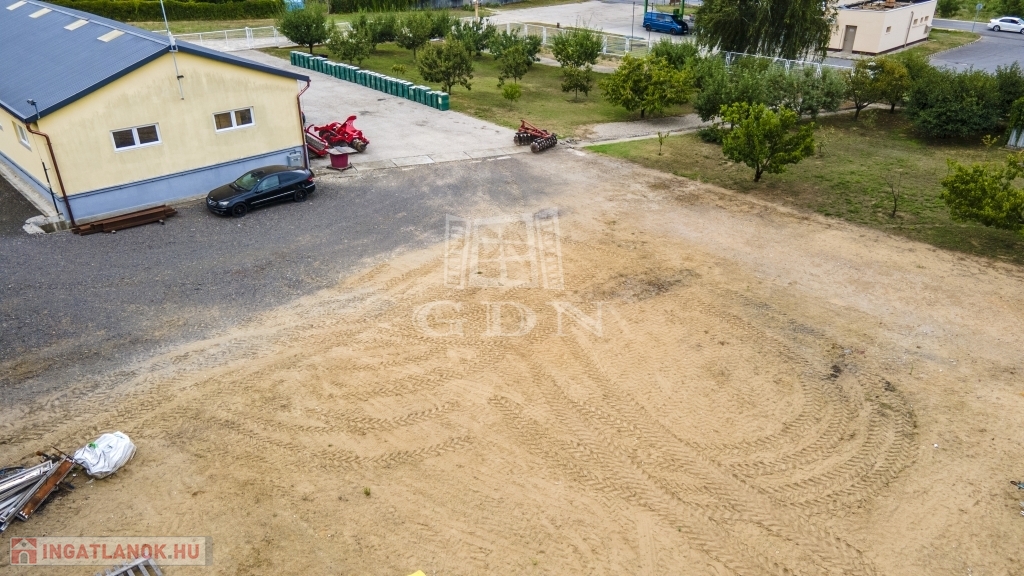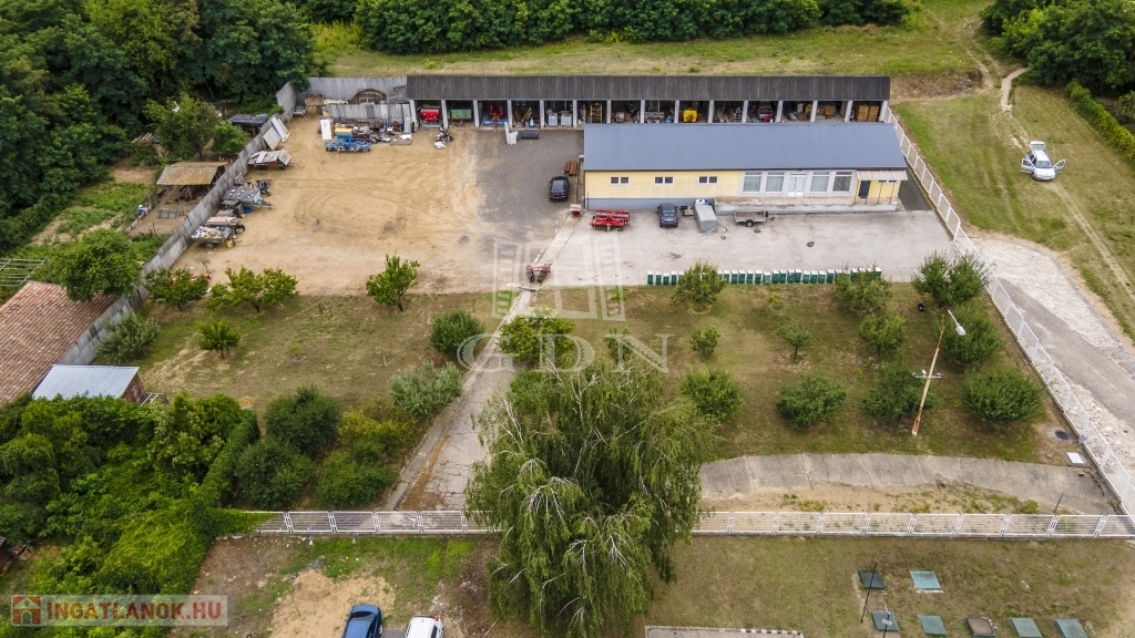 A telep területe körbe kerítve, 3962 m2, amelyen két épület található. 280 m2-es zártcsarnok, klimatizált, összkomfortos (gáz, víz, villany, szennyvíz, telefon, internet) és 364 m2 féltetős nyitott szín. A csarnok előtt az üvegportálos homlokzat oldalán 320 m2 aszfaltozott gépkocsi parkoló áll rendelkezésre.
