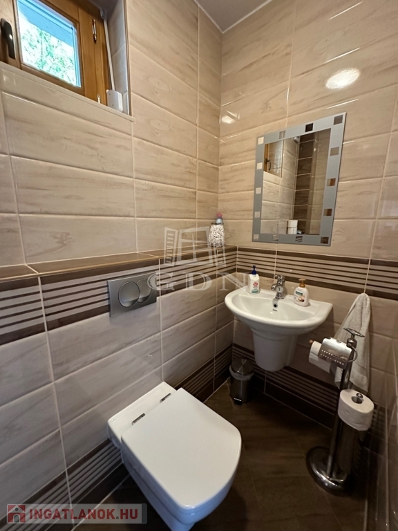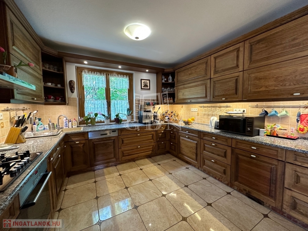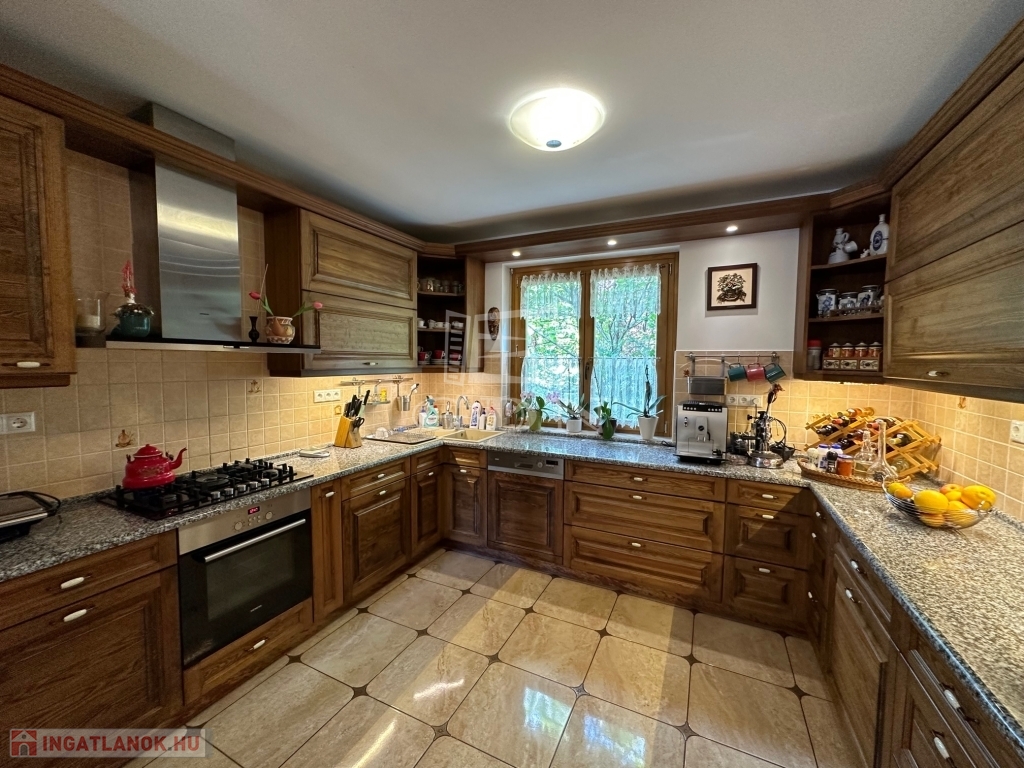 A házban feljáró és udvari világítás, riasztó és kamerarendszer üzemel, elektromos kapukkal, telefonos ki és beléptető rendszerrel.