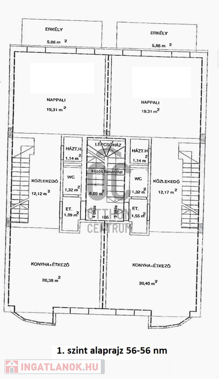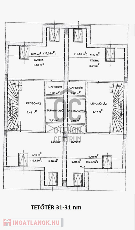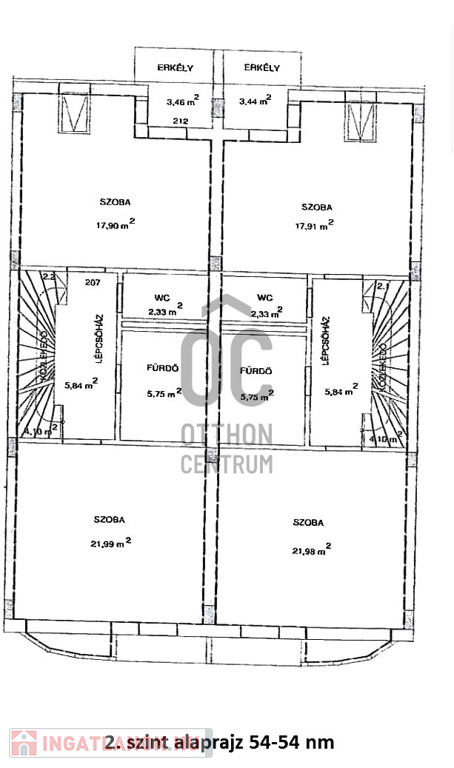A 3 lakásos társasház 2014-ben épült. A földszinten egy lakás, az emeleti szinten két 141/174 nm-es teljesen egyforma lakás van. A lakásban nappali-étkezőkonyha, 4 db hálószoba, 20 nm-es tetőtéri társalgó-tároló, 2 db fürdőszoba, 3 db WC, mosókonyha és 2 erkély található.