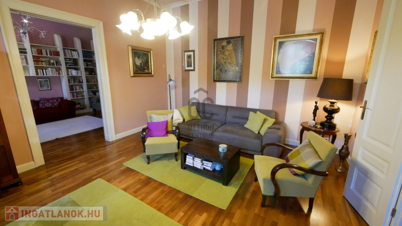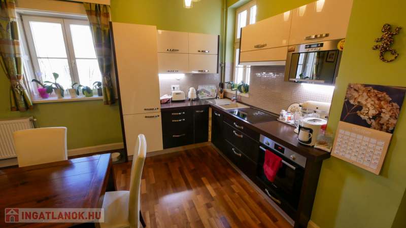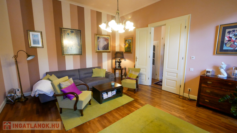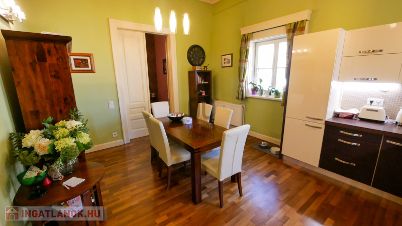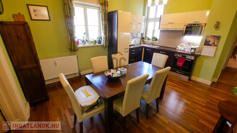 Debrecen belváros, Piac utcai, Kossuth tér közeli, 2. emeleti,116 nm-es, luxus szinten és minőségi anyagokkal felújított ,nagy nappalis + nagy konyha-étkezős + 2 nagy hálós + fürdő-wc-s lakás, 1 belső udvari parkolóhellyel eladó. A felújítás során kicserélték a víz és villanyvezeték rendszert, speciálisan ide gyártatott tömörfa hőszigetelt ablakok és ajtók vannak, klímás, egyedi gyártású konyhaszekrény, tömörfa szalagparketta, Villeroy & Boch szaniterek vannak, a jelenlegi nem mért távhős fűtés későbbi leváltásához előkészített padlófűtés, a tetőt 2 éve felújították. Az antik bútorok egy része megegyezés alapján maradhat.A kiváló állapotnak köszönhetően elég egy tisztasági festés. Elhelyezkedése a Piac utca Nagytemplom és Széchenyi utca közti közkedvelt szakaszán van..