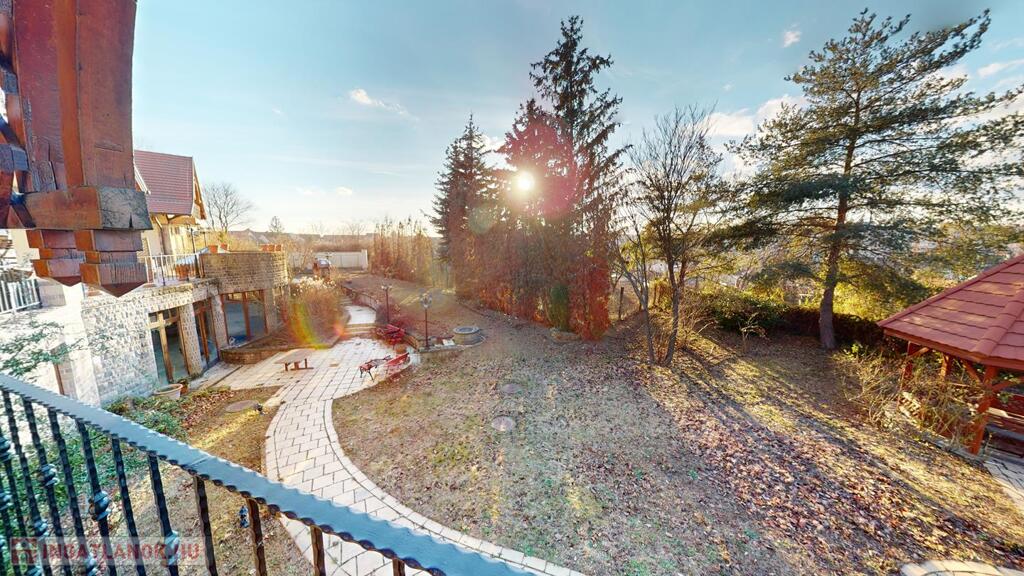 parkosított kert- filagóriával, riasztó, automata garázs illetve bejárati kapu, napkollektor a medencéhez és a használati melegvízhez, jakuzzi, klímák