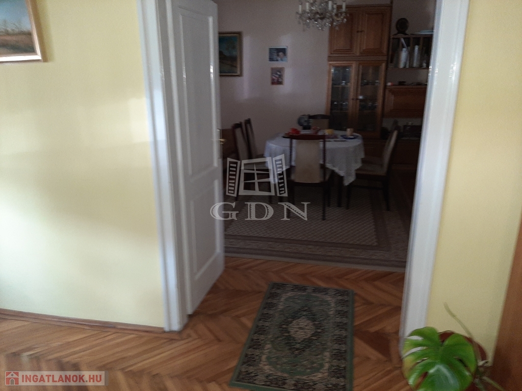 A földszinti lakrész inkább polgári stílusú, de felújított. Itt folyosó, étkezős konyha, két nagyon tágas és egy kisebb szoba, fürdőszoba wc-vel és egy kamra található. Ennek a szintnek a fűtéséről új típusú konvektorok gondoskodnak.