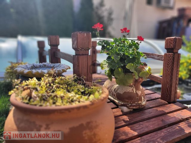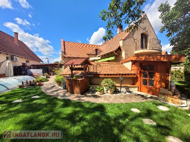 Élhető, tágas terek és kényelmi szempontokból is átgondolt kivitelezés jellemzi az egész ingatlant. Leendő tulajdonosa az év bármely szakaszában kikapcsolódhat anélkül, hogy kitenné a lábát otthonából: a 712 nm-es kert igazán intim, varázslatos hangulatot áraszt, itt rendelkezésre áll jakuzzi (5 személyes), fedett medence (6*3 m-es és 1,5 m mély+hangulatvilágítás), hatalmas terasz (44,06 nm), melyen élvezhetjük a nyári napsütést, vagy kiülve akár elfogyaszthatjuk reggelinket madárcsicsergés kíséretében. Borongósabb napokon szauna, szolárium és a nappaliban elhelyezett kandalló tüze segíthet kizökkenni a szürke hétköznapokból.