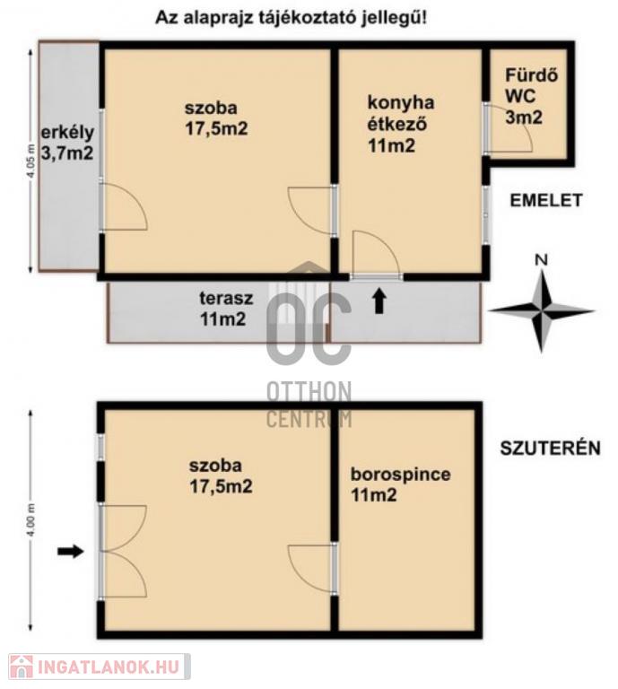 - A telken található még egy 22m2 alapterületű, tégla építésű házikó, amely 2 helyiségből áll és alatta pince található.
