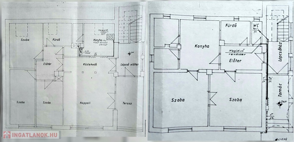 Az eredeti ház (földszint) 1959-ben épült, falazata stabil, száraz. Itt 100 m2-en előtér, két szoba, konyha, kis étkező, kamra, fürdőszoba, külön wc, található. A helyiségek burkolata járólap, illetve hajópadló. A nyílászárókat a 2000-es évek elején cserélték korszerű, redőnyös fa ablakokra. Ekkor történt meg a vízvezetékek, a konyha és a fürdőszoba felújítása is. Fűtése cirkó gázkazánnal történik, valamint mindkét szobában cserépkályha is van. A melegvizet villanybojler biztosítja.