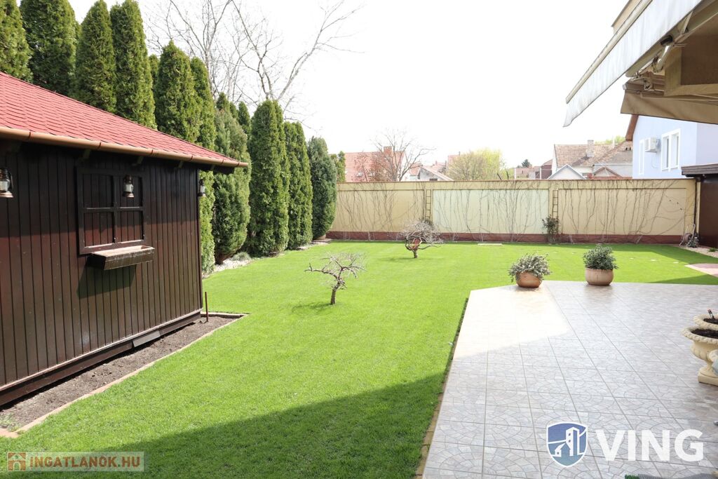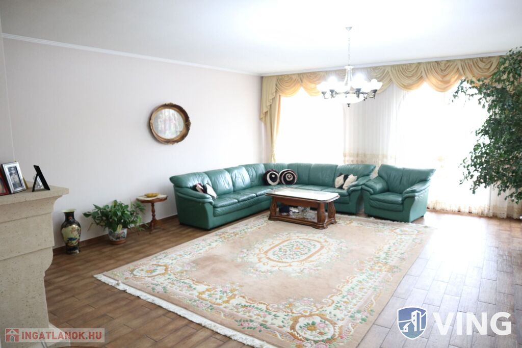 - elrendezés, földszint: előtér+közlekedő+lépcsőház+háztartási helyiség+3 db hálószoba+2 db fürdőszoba+ külön WC.+ gardrób+konyha-étkező-nappali+spájz+terasz
