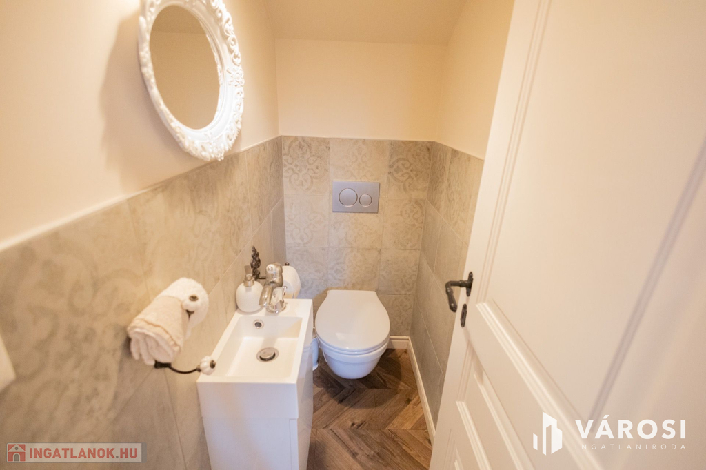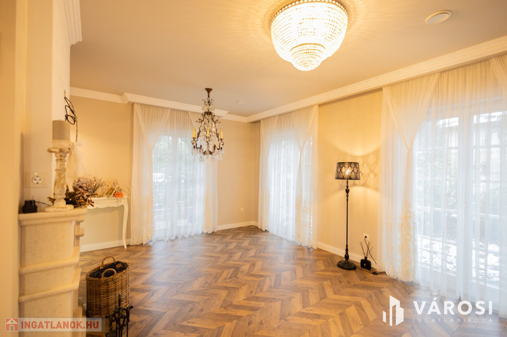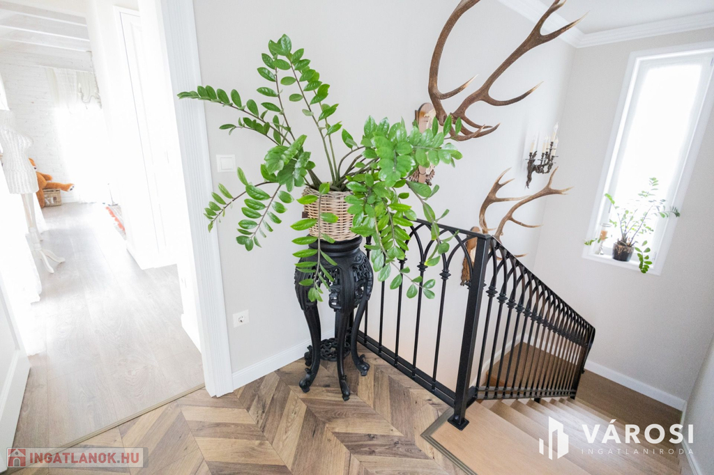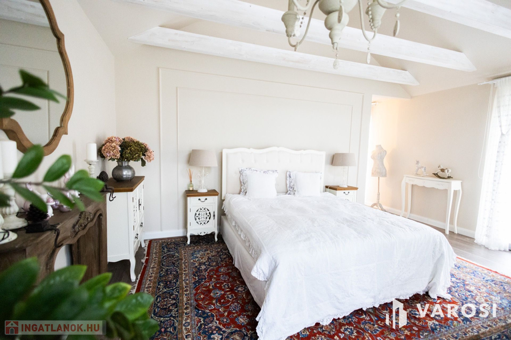 Siófokon, az Aranyparton eladóvá vált egy 2020-ban épült, 310 nm alapterületű, két lakrészből álló családi ház és apartman. Az ingatlan a Balaton parttól 300 méterre, csendes utcában található. Az ingatlanok két szintesek, egy 753 nm alapterületű telken helyezkednek el. A ház 25 cm-es porotherm tégla falazattal épült, külső polystirol hőszigeteléssel, melyek az egyedileg gyártott, 3 rétegű üveggel ellátott fa nyílászárókkal együtt tökéletes hő- és hangszigetelést biztosítanak. Az ingatlanban egyedi gyártású, luxus minőségű anyagok kerültek beépítésre legyen szó szaniterekről, burkolókról, laminált parkettáról vagy az egyedileg, asztalosmester által gyártott bútorokról. A ház gépészete is a legmodernebb technológiákat hordozza, mindkét ingatlanban külön hőszivattyú biztosítja a melegvizet, a fűtést és a klimatizálást, a hőszivattyúk áramellátása napelemekről megoldott. A meleg nyári hónapokban a klíma mellett az ablakokra szerelt zsalugáterek segítik az árnyékolást és így a kellemes hőmérséklet kialakítását. Ezek mellett automata szellőztető rendszer is kiépítésre került. A gyönyörű, parkosított kertben automata öntözőrendszer, illetve több kocsibeálló is helyet kapott. Az első épületrész lakóingatlaniként üzemel, a második épületrész földszintje szintén lakóingatlan, de az emeleten 3 db külön fürdőszobás apartman került kiépítésre, mely évek óta visszatérő vendégkörrel rendelkezik. Az apartmanok a lakórésztől teljesen külön bejáraton keresztül közelíthetőek meg, így teljes nyugalmat biztosítva az itt lakóknak.