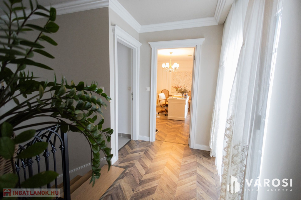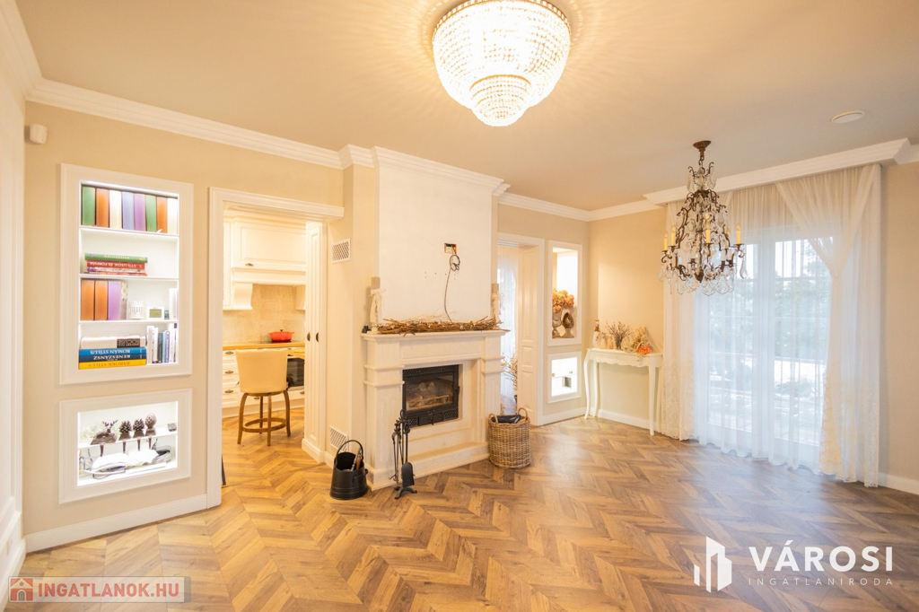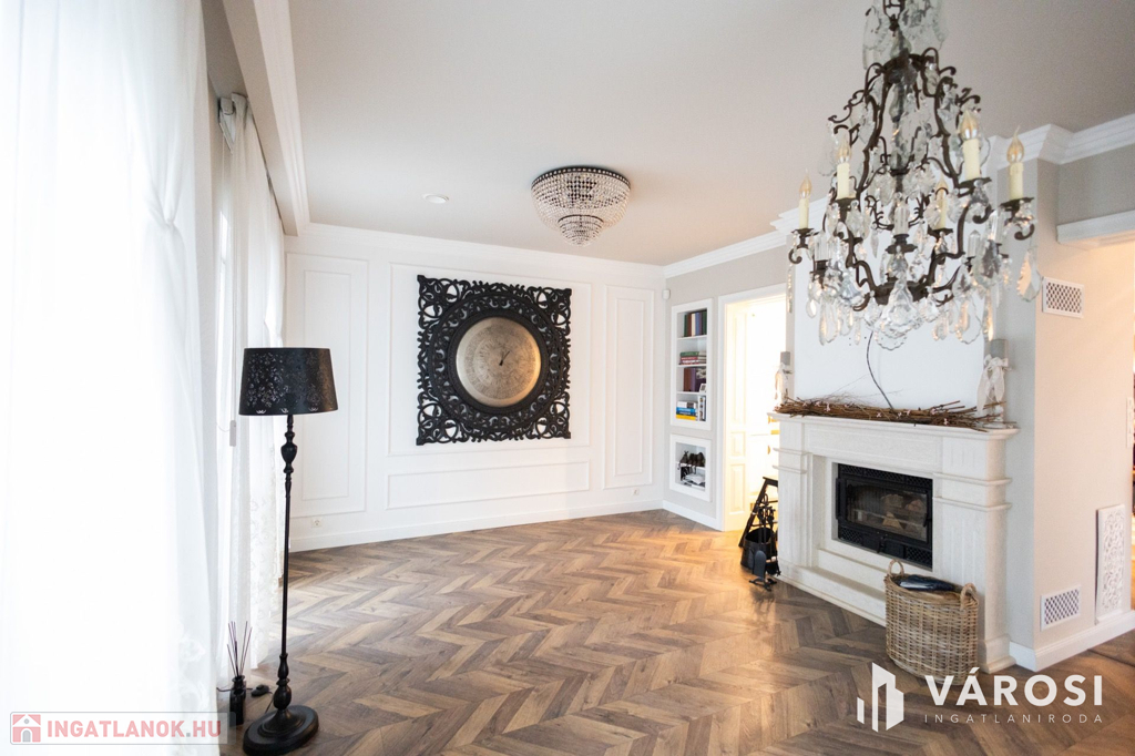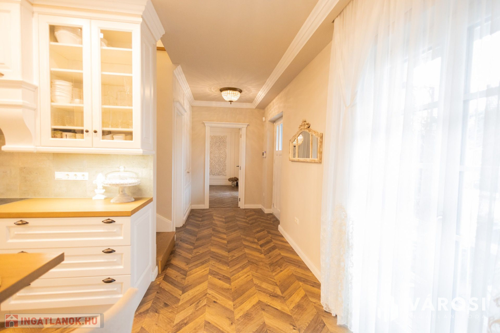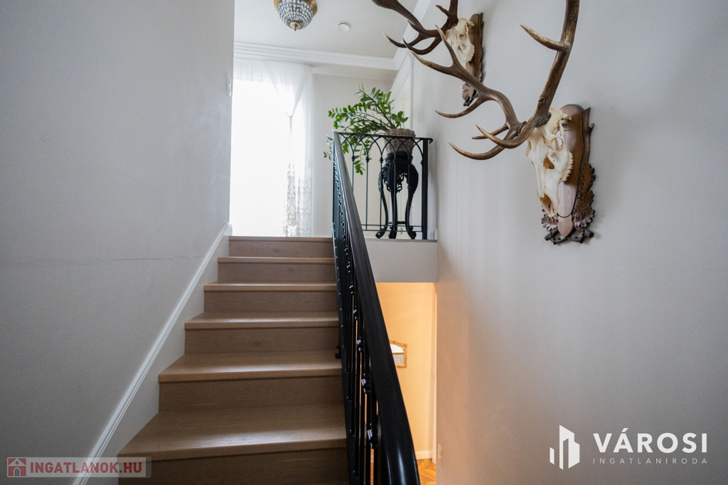 Siófokon, az Aranyparton eladóvá vált egy 2020-ban épült, 310 nm alapterületű, két lakrészből álló családi ház és apartman. Az ingatlan a Balaton parttól 300 méterre, csendes utcában található. Az ingatlanok két szintesek, egy 753 nm alapterületű telken helyezkednek el. A ház 25 cm-es porotherm tégla falazattal épült, külső polystirol hőszigeteléssel, melyek az egyedileg gyártott, 3 rétegű üveggel ellátott fa nyílászárókkal együtt tökéletes hő- és hangszigetelést biztosítanak. Az ingatlanban egyedi gyártású, luxus minőségű anyagok kerültek beépítésre legyen szó szaniterekről, burkolókról, laminált parkettáról vagy az egyedileg, asztalosmester által gyártott bútorokról. A ház gépészete is a legmodernebb technológiákat hordozza, mindkét ingatlanban külön hőszivattyú biztosítja a melegvizet, a fűtést és a klimatizálást, a hőszivattyúk áramellátása napelemekről megoldott. A meleg nyári hónapokban a klíma mellett az ablakokra szerelt zsalugáterek segítik az árnyékolást és így a kellemes hőmérséklet kialakítását. Ezek mellett automata szellőztető rendszer is kiépítésre került. A gyönyörű, parkosított kertben automata öntözőrendszer, illetve több kocsibeálló is helyet kapott. Az első épületrész lakóingatlaniként üzemel, a második épületrész földszintje szintén lakóingatlan, de az emeleten 3 db külön fürdőszobás apartman került kiépítésre, mely évek óta visszatérő vendégkörrel rendelkezik. Az apartmanok a lakórésztől teljesen külön bejáraton keresztül közelíthetőek meg, így teljes nyugalmat biztosítva az itt lakóknak.