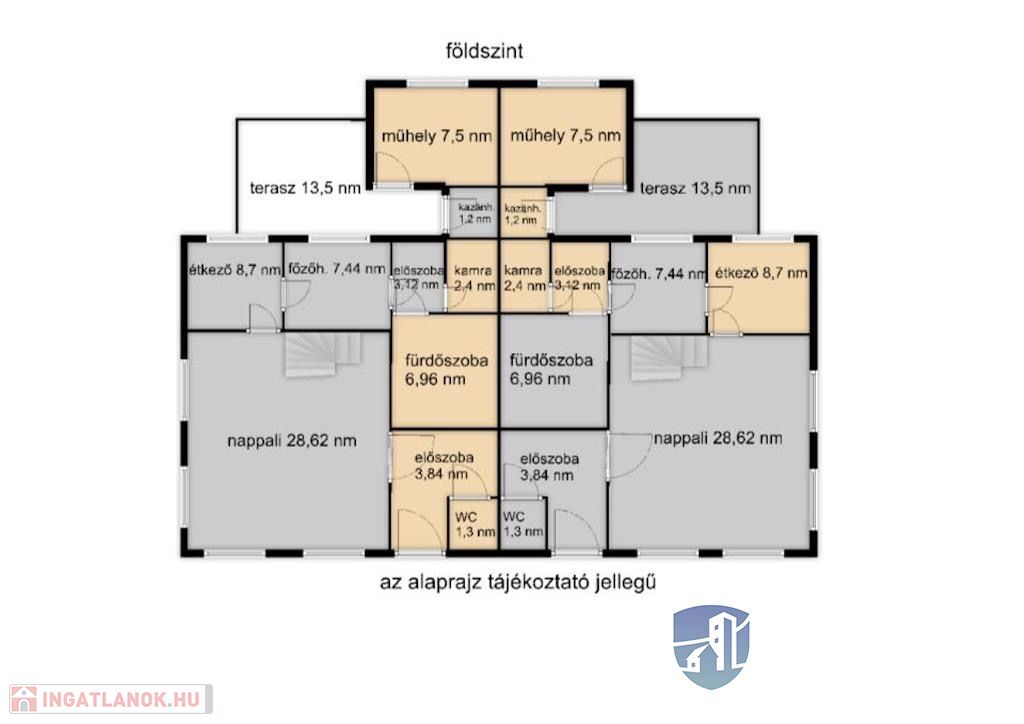 Teraszok területe: 38 m2.