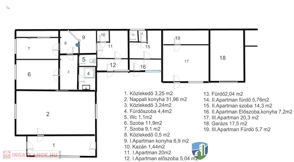 3 db. apartman: mindhárom külön-külön: 1 db. szoba, konyha, fürdőszoba.