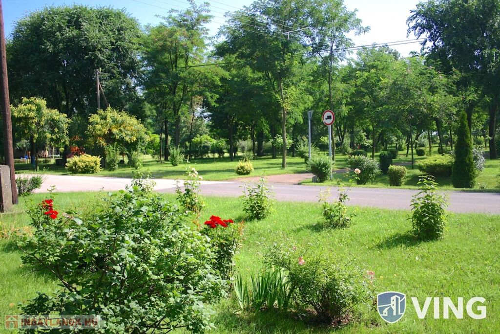 Az üzlet előtt gondozott park, kellemes környezet található.