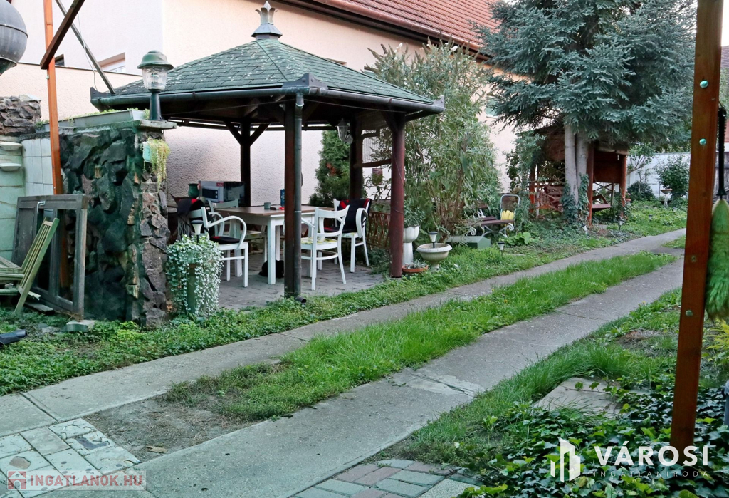 Az elkerített, rendezett telek mérete 412 m2, amelyen helyet kapott egy garázs és egy kisebb melléképület is.