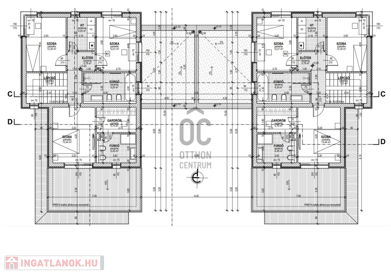 A házban amerikaikonyhás nappali, 4 hálószoba és 3 fürdőszoba található, valamint egy 40 nm-es terasz is rendelkezésre áll.