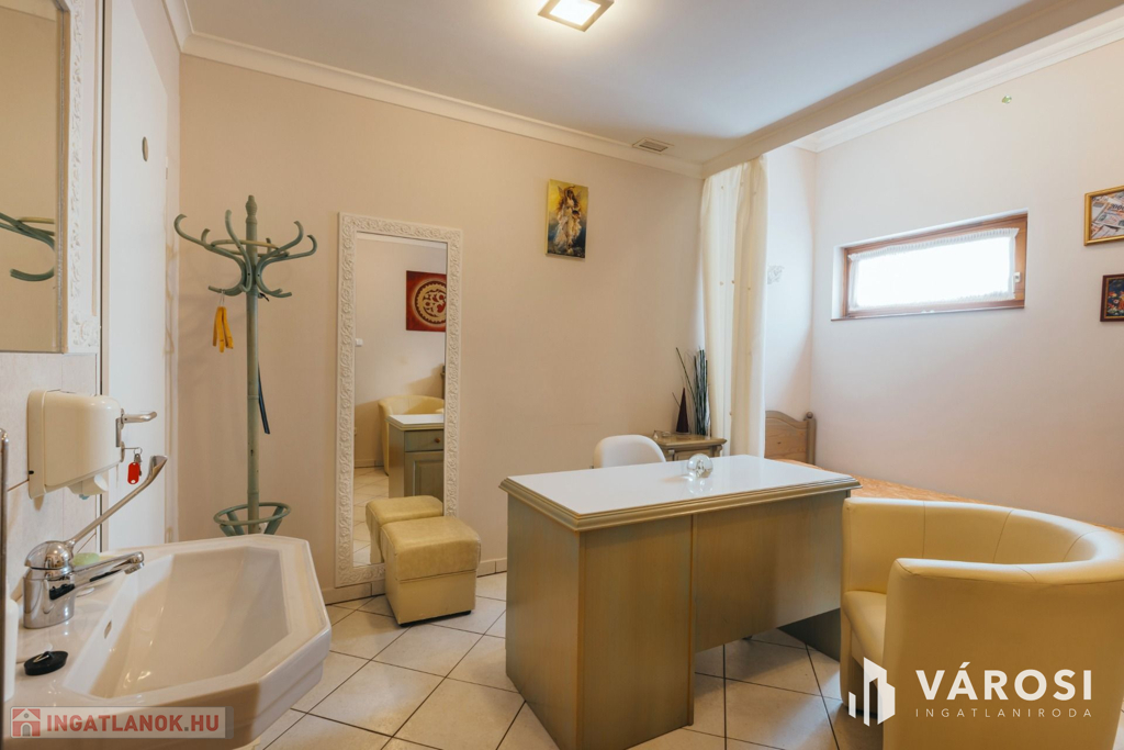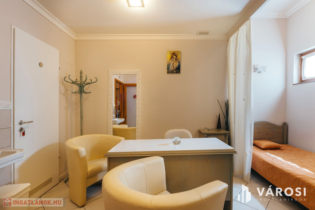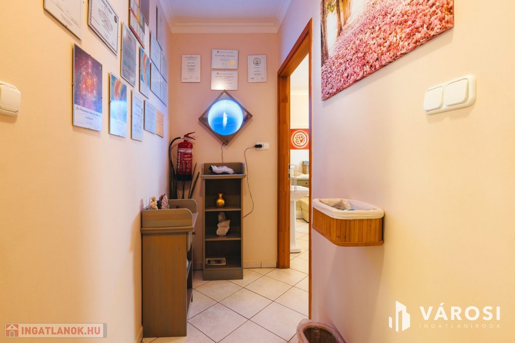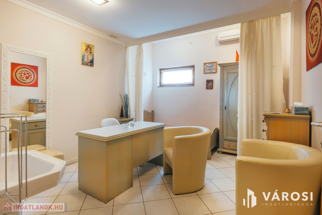 Az ingatlan közkedvelt helyisége, az egészségre jótékony hatással bíró 16m2 alapterületű sószoba, amely 6 tonna parajdi sótéglából lett megépítve. Orvosi rendelő elvárásainak megfelelően került kialakításra egy 14m2 területű kezelő, melyhez kapcsolódik öltöző és egy mosdó, érintésmentes csapteleppel.