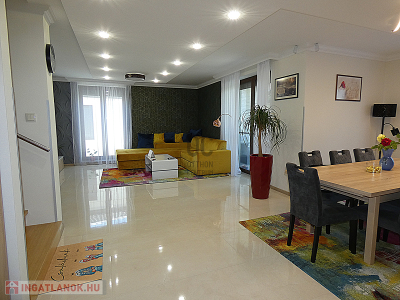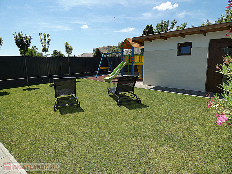 A garázsban akár négy autó is elfér, így a parkolási gondokról sem kell aggódnod. Az ingatlan állapota kiváló, a minimalista kialakításnak köszönhetően pedig modern és világos. A tágas nappaliban LED hangulatvilágítás teszi hangulatossá az esti órákat, az amerikai konyha pedig lehetővé teszi, hogy az egész család együtt élvezze az étkezéseket. Az ingatlanban beépített bútorok és szekrények találhatóak, így nem kell aggódnod az elhelyezés miatt. Az ingatlanban 4 hálószoba és 2 fürdőszoba található, így akár nagyobb családoknak is kényelmes otthon lehet. A terasz és az erkély mérete is ideális, hogy a szabadban is élvezhesd az időtöltést. Az automata öntözőrendszer és a rendezett kert gondoskodik arról, hogy mindig szép és ápolt legyen a környezet. A biztonsági ajtó és a riasztórendszer pedig garantálja a családod biztonságát. Az ingatlan környéke csendes és biztonságos, így a gyerekek is nyugodtan játszhatnak a kertben.