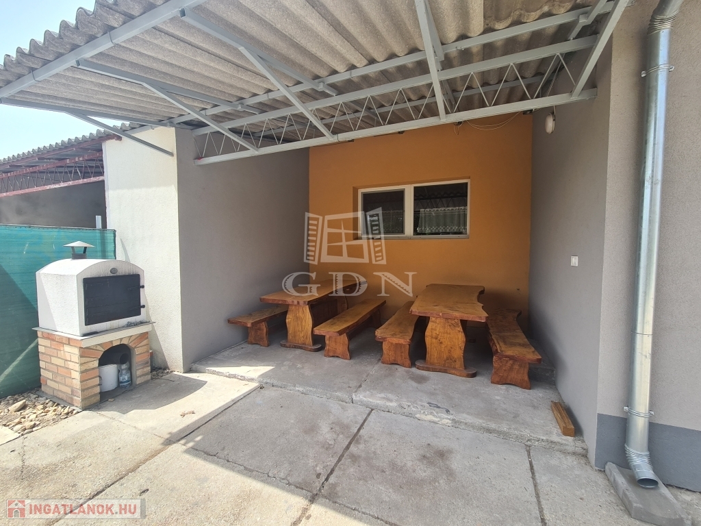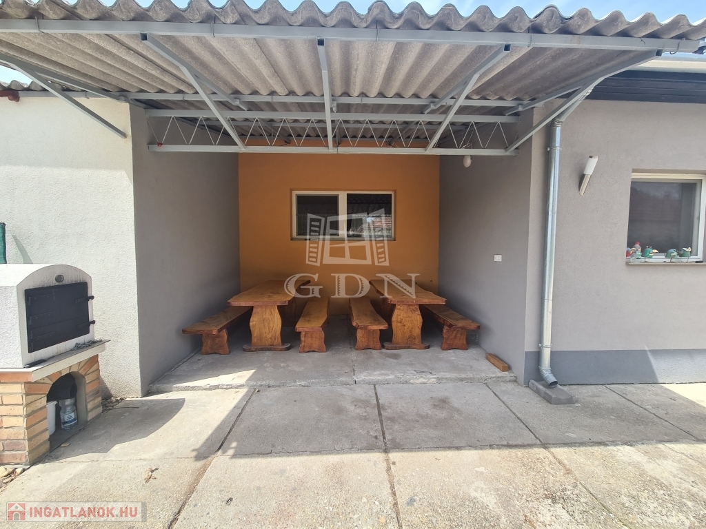 Az ingatlanból kilépve az első udvarra érünk , ahol remek lehetőség nyílik kerti sütögetésekre, családi összejövetelekre hiszen a palettát tovább bővíti egy fedett terasz.