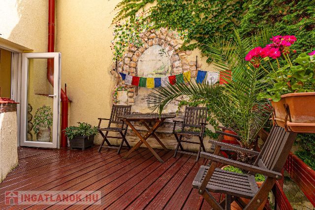 Ez a bájos lakás megőrzi a régi idők eleganciáját és modern kényelmi funkciókat is kínál. Az ingatlan 69 négyzetméteres lakótere magában foglal egy konyhát étkezővel, egy fürdőszobát WC-vel, egy külön WC-t, egy gardróbot, kamrát, valamint egy nappalit, melynek galériájában hálószoba lett kialakítva, továbbá egy hálószobát szintén galériával. A lakrészből közvetlenül egy privát, hangulatos kis udvarra léphet, mely saját terasszal rendelkezik – tökéletes helyszín a reggeli kávézásra, olvasásra vagy esti borozgatásra.