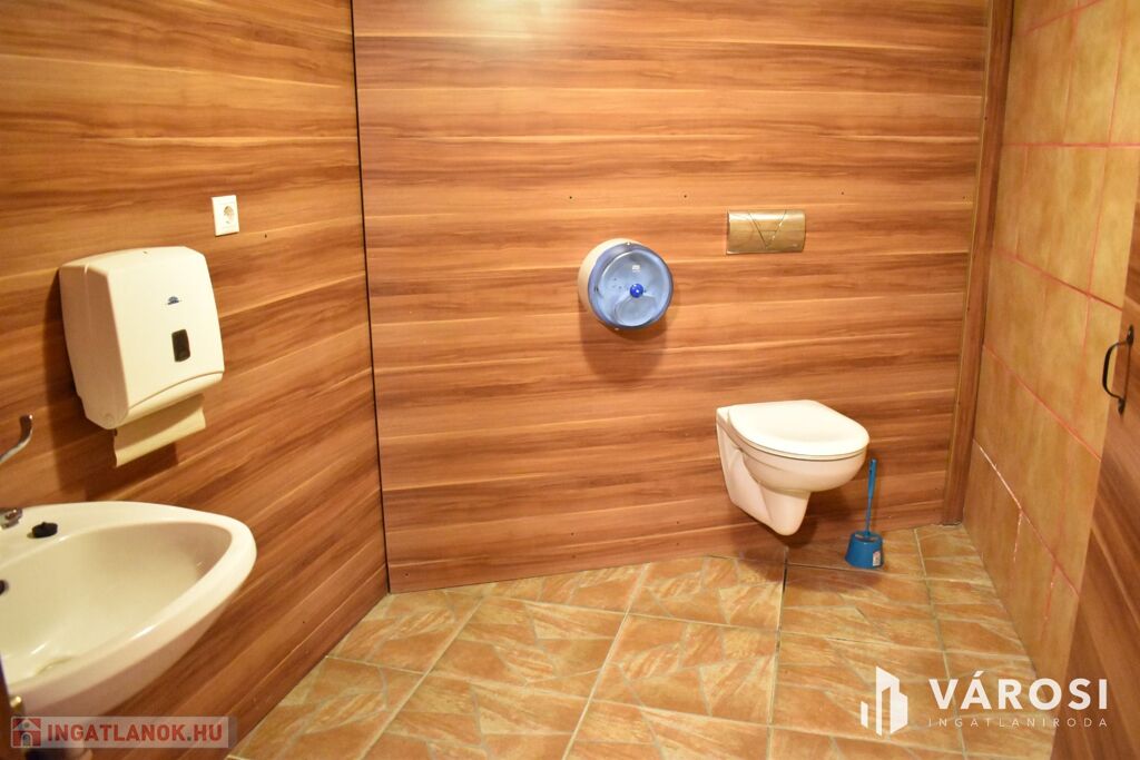 Az ingatlan földszinti részén lett kialakítva egy hangulatos és minden igényt kielégítő bárpult, egy éttermi vendéglátó rész, amely a kialakított szintén hangulatos galéria résszel közel 200 fő befogadásra alkalmas. A galéria rész ebből 104 fő befogadásra alkalmas, ahol a kialakításának köszönhetően zártkörű rendezvények lebonyolítására is tökéletesen alkalmas. A vendéglátó részen a közelmúltban lettek felújítva a vizesblokk (mosdó, WC) helységek is, amelyből 3 db. található az éttermi részen (férfi, női és mozgáskorlátozott). A vendéglátó egységhez tartozik egy hatalmas és modern eszközökkel felszerelt konyha, amely több részből áll, itt lett kialakítva egy pizza készítő, melegkonyha, előkészítő, mosogató, illetve több hűtő, raktár és mosdó helység is. A fűtésről 3 db gázkazán lapradiátorokkal, padlófűtéssel, a hűtésről klímaberendezések gondoskodnak. A vendéglátó részen az elektromos hálózat is korszerű, itt 3 x 72 A és ipari áram található.
