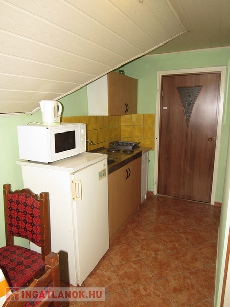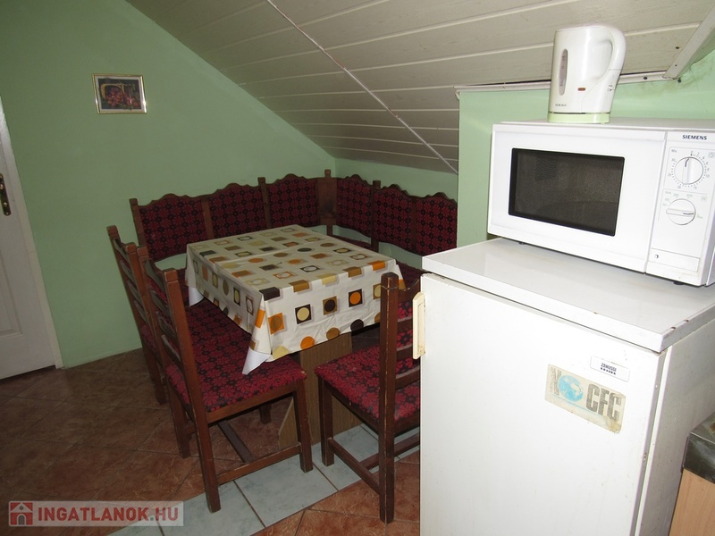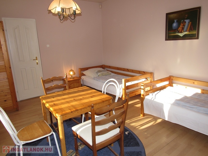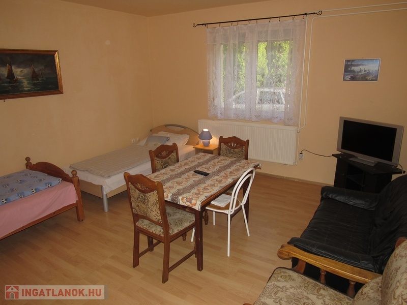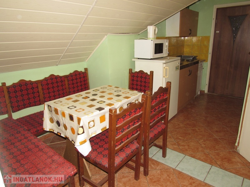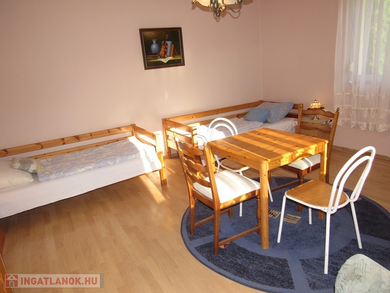 Az emeleten található 50 m2-es, 1 szobás apartman 3 ággyal és 1 pótággyal rendelkezik. Saját fürdõszoba, Wc, konyhasarok és étkezõsarokkal.