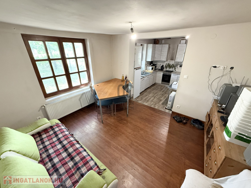 -Nappali-konyha-étkező, látszó gerendás fafödémmel