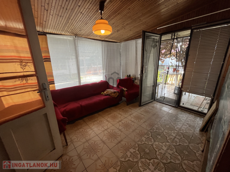 Helyiségei: étkező, konyha, kamra, fürdőszoba-wc és 3 szoba. Két külön bejárat van, fedett előterasz és nagy zárt terasz is a ház része.